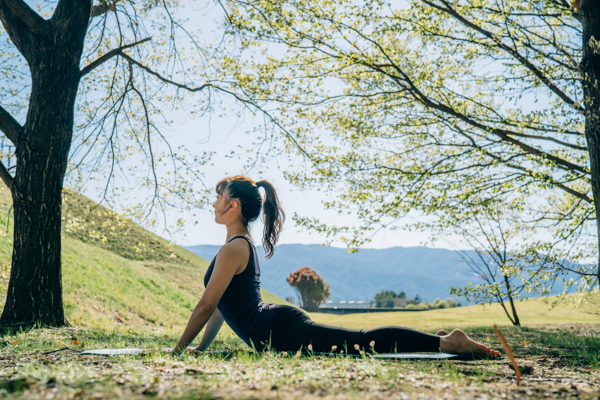 フライングドッグの動作には体幹の回旋運動が含まれています。この動きにより、脊柱の安定性向上や体幹の側面の筋肉の強化が期待されます。
