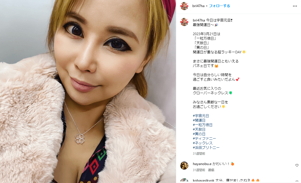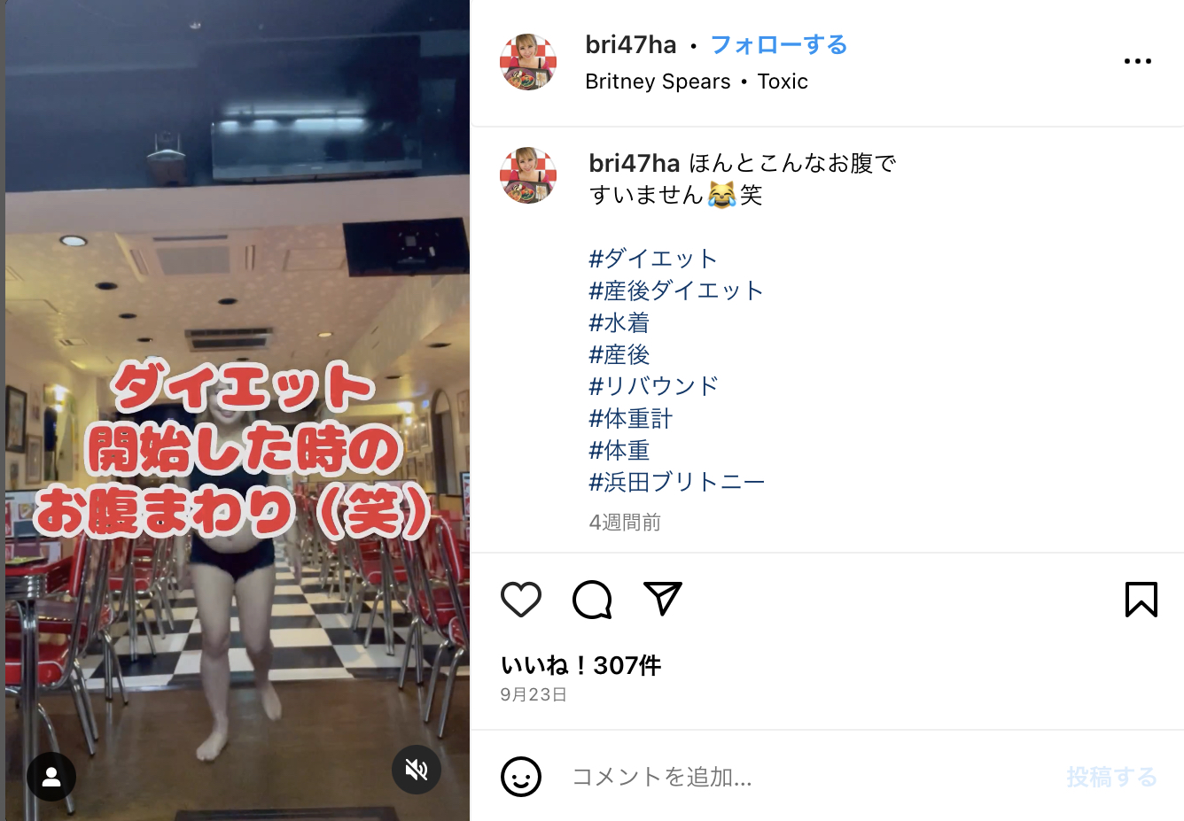 お子さんを出産したブリトニーさん。出産後のInstagramへの投稿で、浜田ブリトニーさんは「産後ダイエットを本格的にはじめるよ~」と投稿しています。