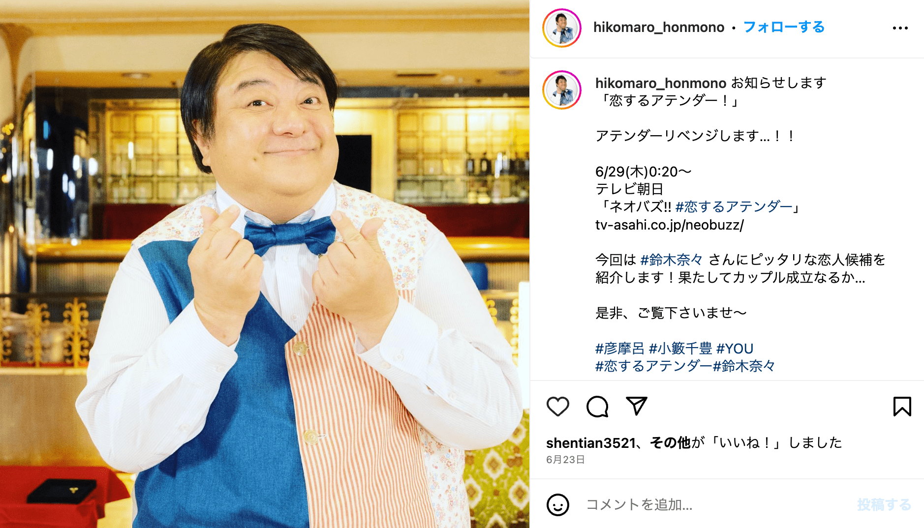 引用元(彦摩呂Instagramより)