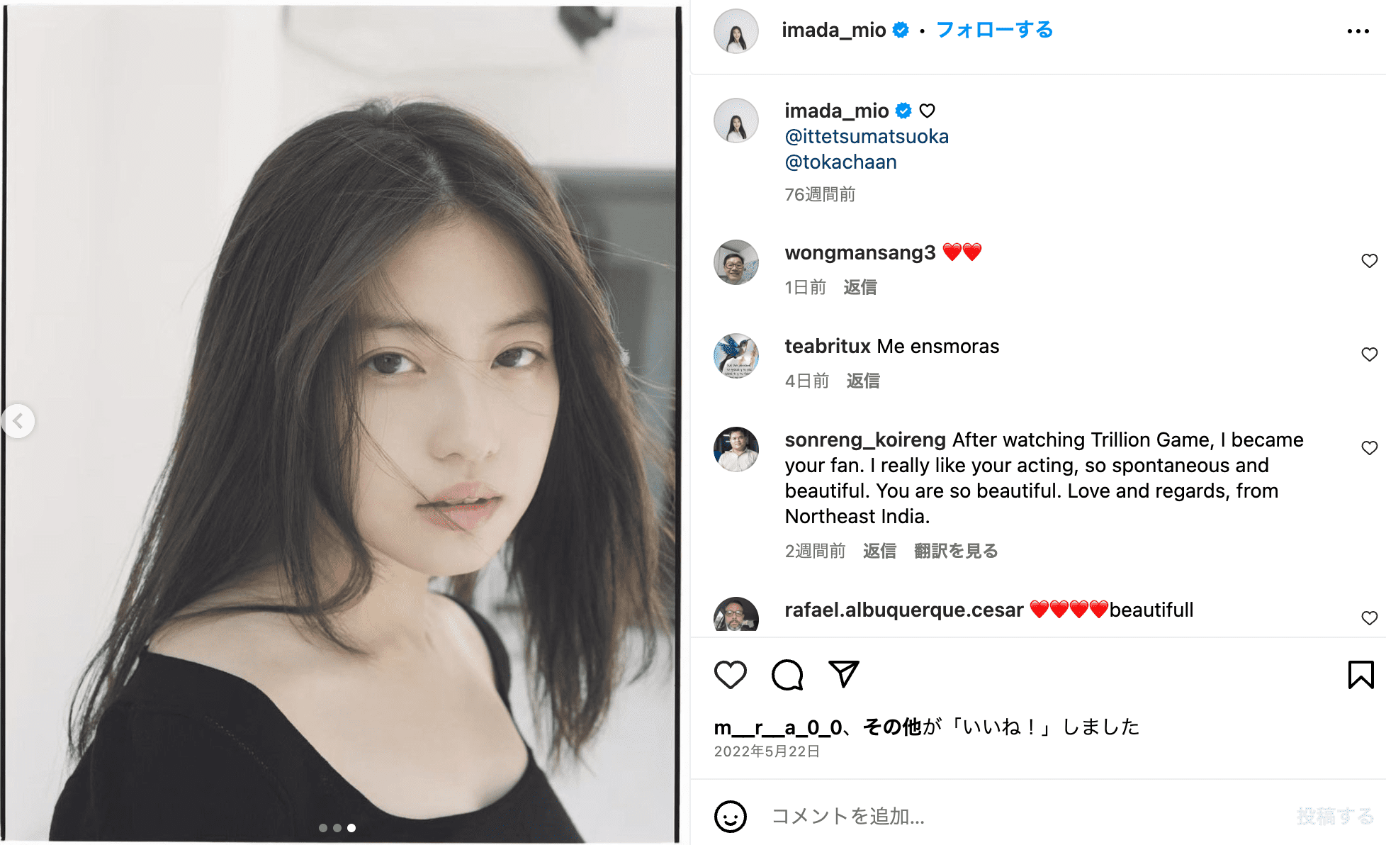 引用元(今田美桜Instagramより)