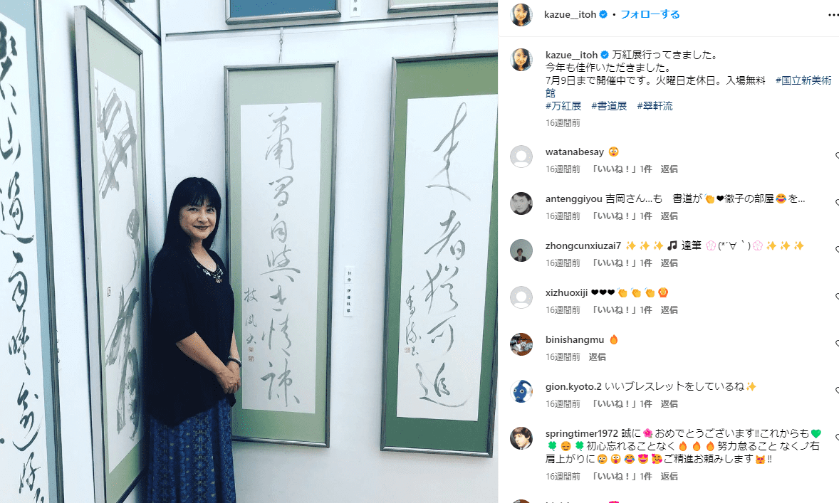 現在も芸能界に加えてYouTuberで活躍し、書道の有段者としても頑張っておられ、ダイエットのみならず、仕事に取り組む伊藤かずえさんを応援しましょう。