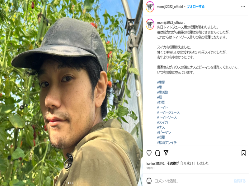 また、2023年現在は北日本の自然豊かな地域に家族ともに住み、年の半分は農業にも取り組んでいます。そのため、インスタには農業の画像を多くあげています。