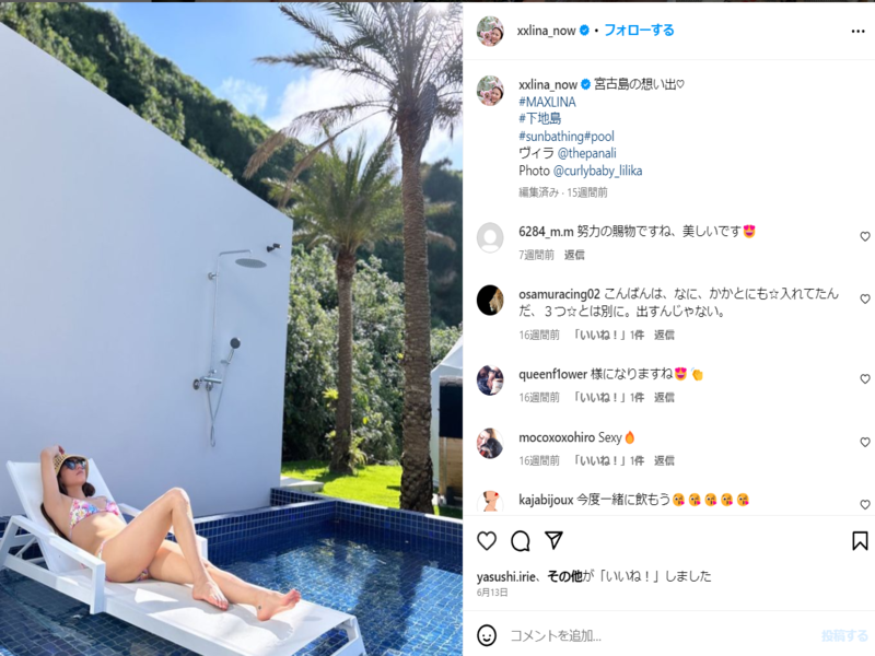 結果、ダイエットは成功し、CMでは13年ぶりの水着姿を披露しました。LInaさんは、その体型を今も維持しています。