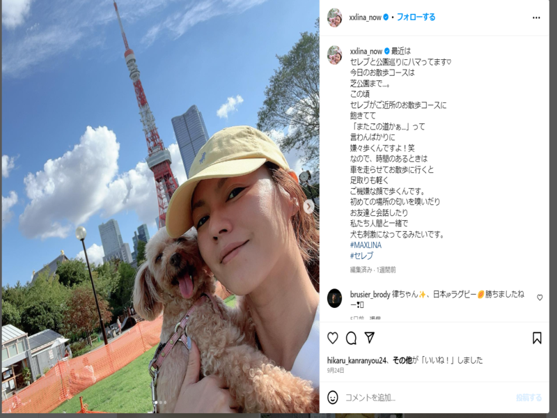 現在は愛犬と過ごしたり、習い事を楽しんだりする一人暮らしの気楽さにすっかり慣れてしまったとか。確かにSNSでは、今の生活を楽しんでいる様子が見られます。愛犬とのショットも多いので、かなり可愛がっているようです。