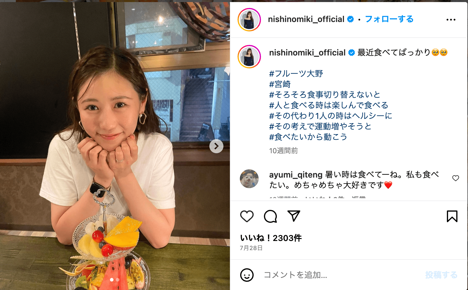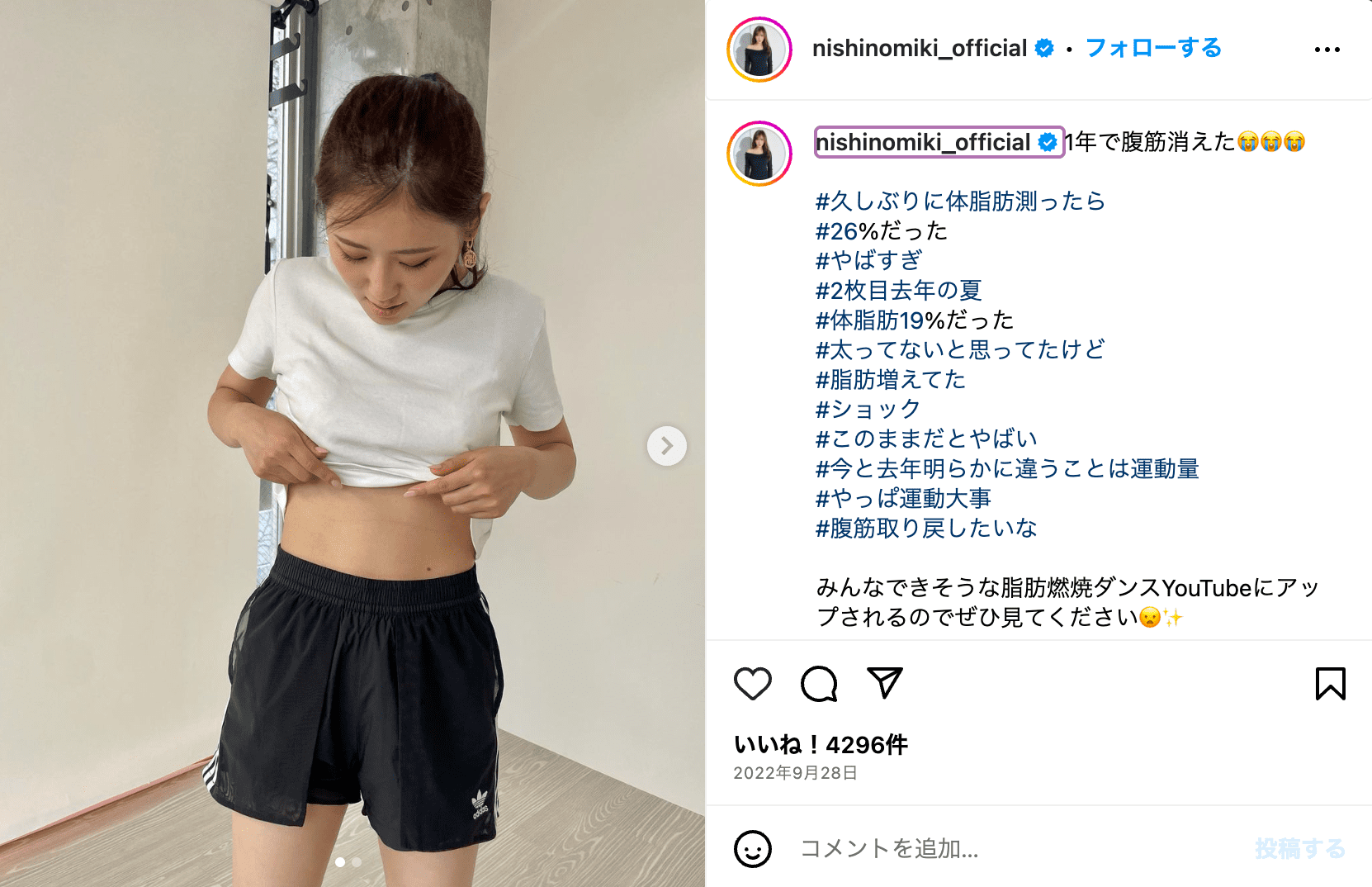 西野未姫さんは、SNSを通じてファンとのコミュニケーションを頻繁に取っており、その中でダイエットの取り組みや成功体験、失敗体験をオープンに共有しています。