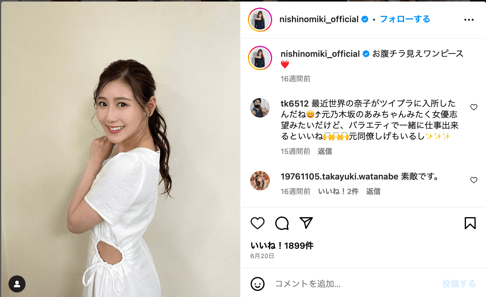 西野未姫さんは、AKB48の14期生としてデビューし、その後もタレントとしての活動を続けています。