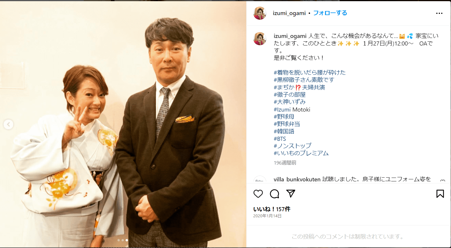 大神いずみさんの夫は元プロ野球選手で、現在は読売ジャイアンツ(巨人軍)のコーチの元木大介さんで、2人の息子がいます。
