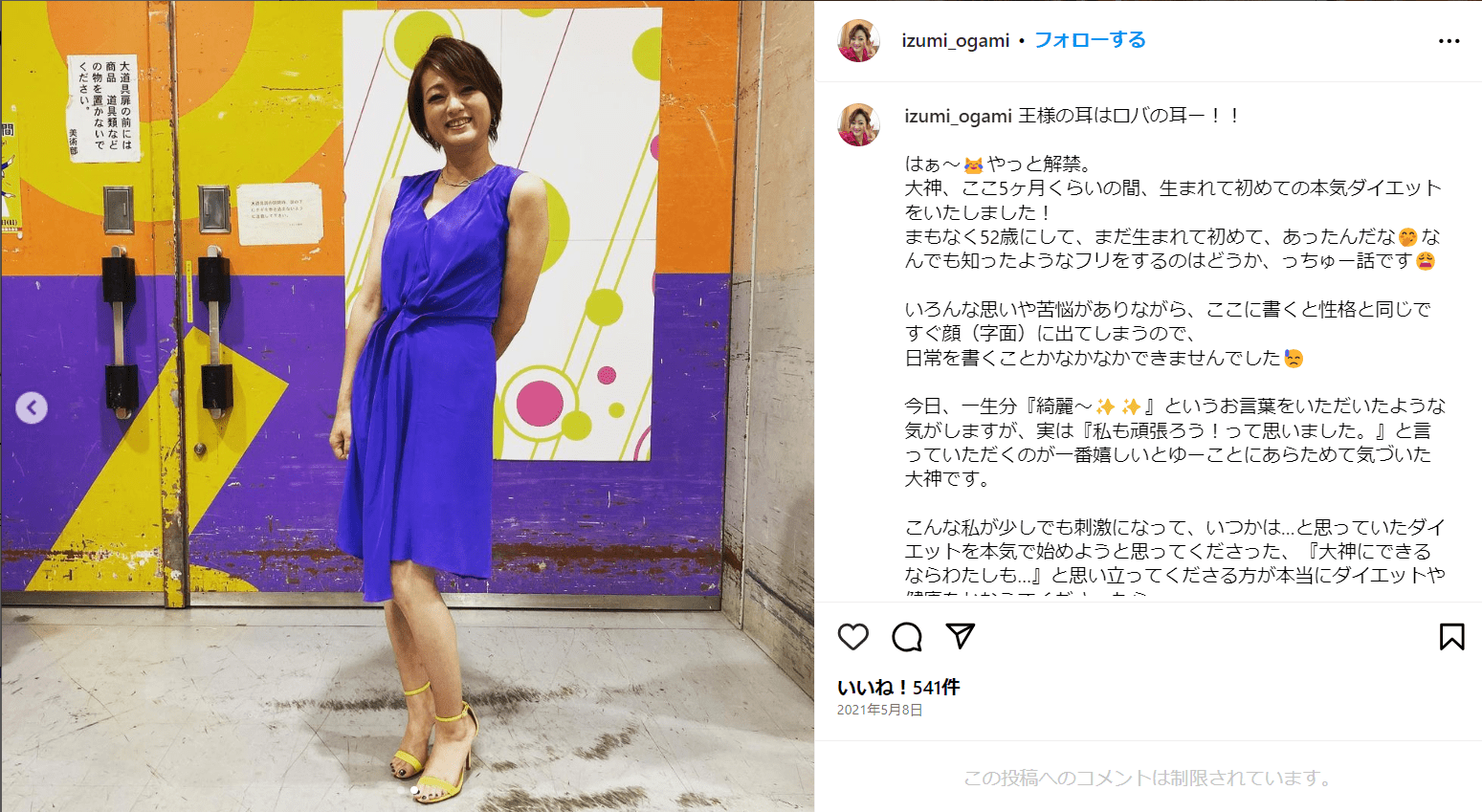 調べてみたところダイエットから2年経過した現在、大神いずみさんの体重は公表されていませんが、最近のインスタグラムの写真がこちら。