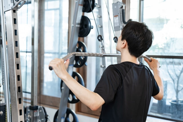 また、座位ではなく立位で行うケーブルプルダウンは、ラットプレスと似た動作でありながら、異なる角度から筋肉に刺激を与えることができます。