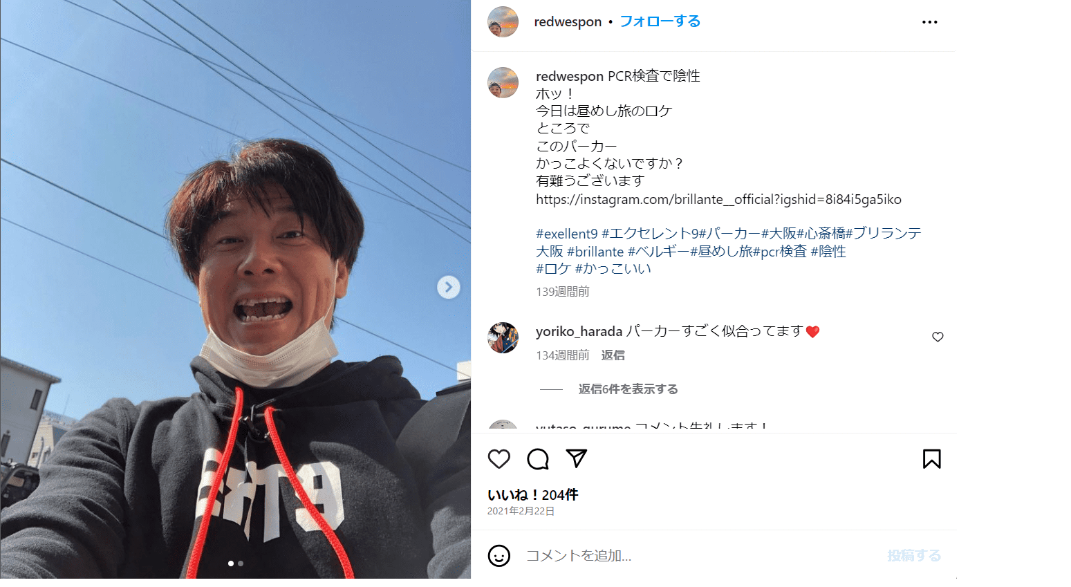 レッド吉田さん、背が高いので若い頃はスリムなイメージがありましたが、すっかり中年太りしてしまったそうです。