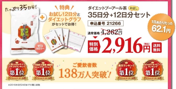 公式サイト⇒138万人が感動したダイエットプーアール茶![]()