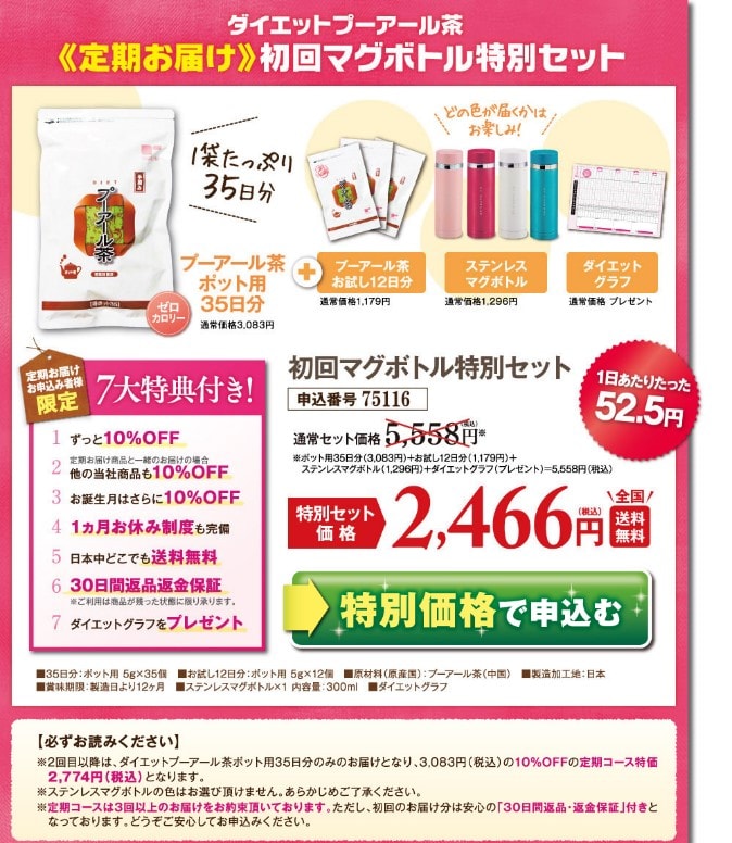 【ダイエットプーアール茶 定期コース(セット内容→ダイエットプーアール茶35日分+ダイエットプーアール茶12日間分+ステンレスマグボトル+ダイエットグラフ】