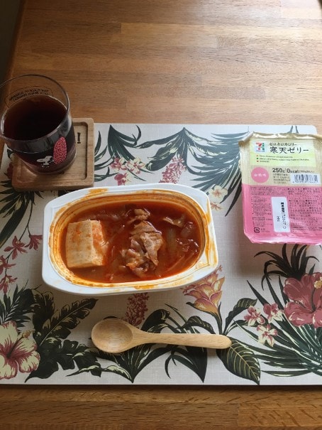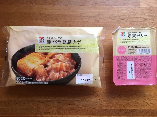 豚肉と豆腐という組み合わせはタンパク質が多そうだなぁ、と。それだけではあまり満足できなかったので、寒天ゼリーもプラスしてみました。