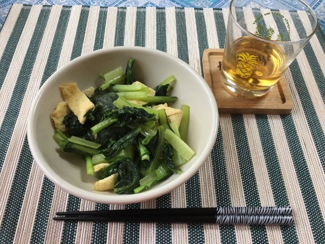 あと、なるべく間食をした方が良いとも指導を受けているので、昼食と夕食の間に間食として、小松菜の煮びたしを食べました。