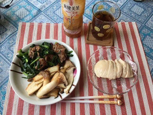 夕食は、牛肉、ピーマン、椎茸の炒め物を食べました。