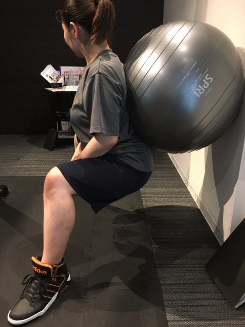 足を前後に大きく開いた状態でのスクワットや、バランスボールを使用したスクワット、ジャンプをしながらのスクワットなど、下半身に特化したトレーニングをみっちり行い、セッションは終了しました。