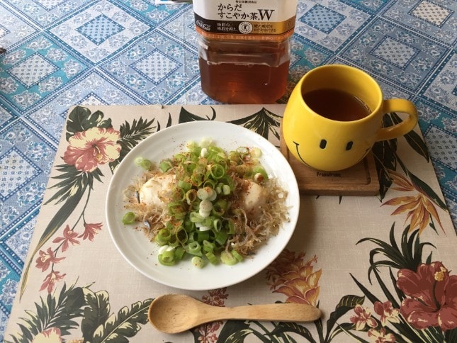 低糖質の食事にもピッタリなので、朝食として頂くことにしました。起きてすぐに白湯を飲んでから、朝食を食べます。
