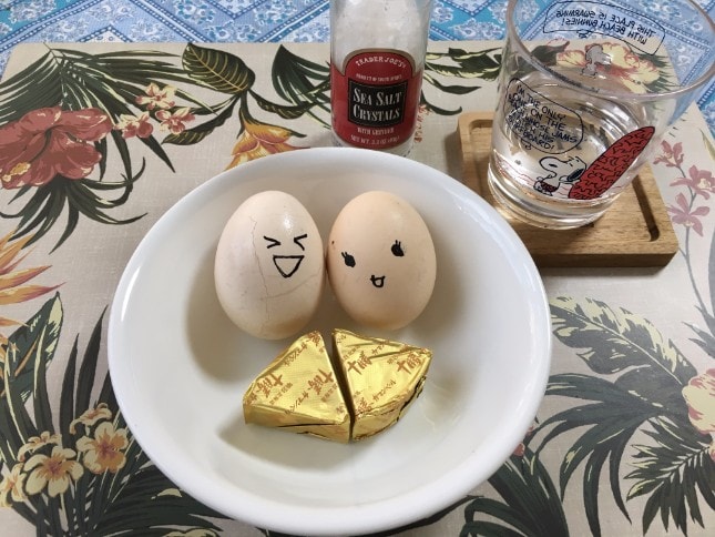帰宅し、ゆで卵とチーズを間食として食べ、