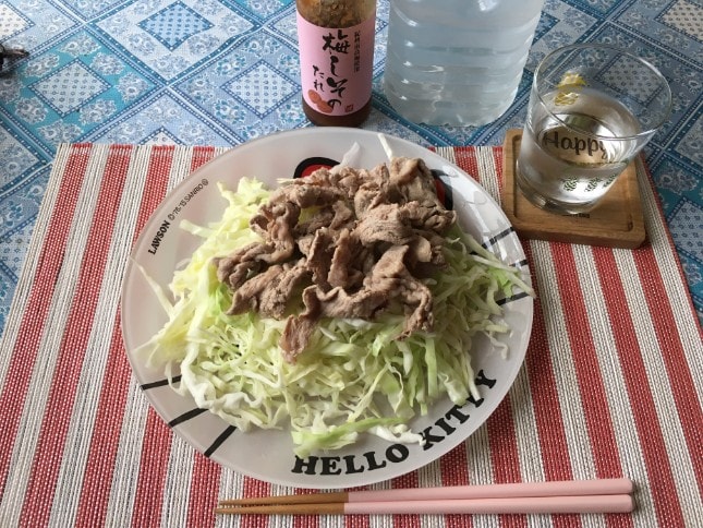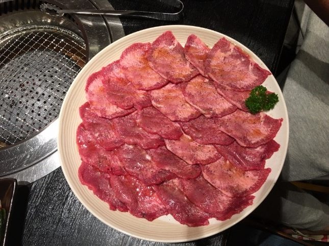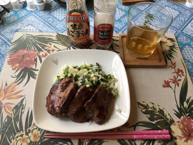 昼食は牛タンを焼いたものと、キャベツやニラなどを ごま油で和えた薬味をそえて食べました。