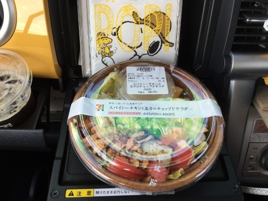 外出していたので、昼食はコンビニで買った チキンとたまごのチョップドサラダを。