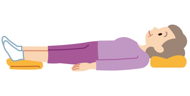 ③膝を曲げた状態で、足を床から垂直に持ち上げたら、その状態で10秒を目安に姿勢をキープします。姿勢をキープしているときは、呼吸を安定させて、リラックスした状態で行いましょう。