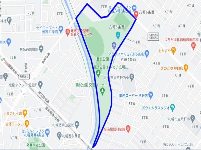 函館本線「琴似駅」と「発寒中央駅」の間に位置する運動公園で農林水産省北海道農業試験場跡地につくられました。
