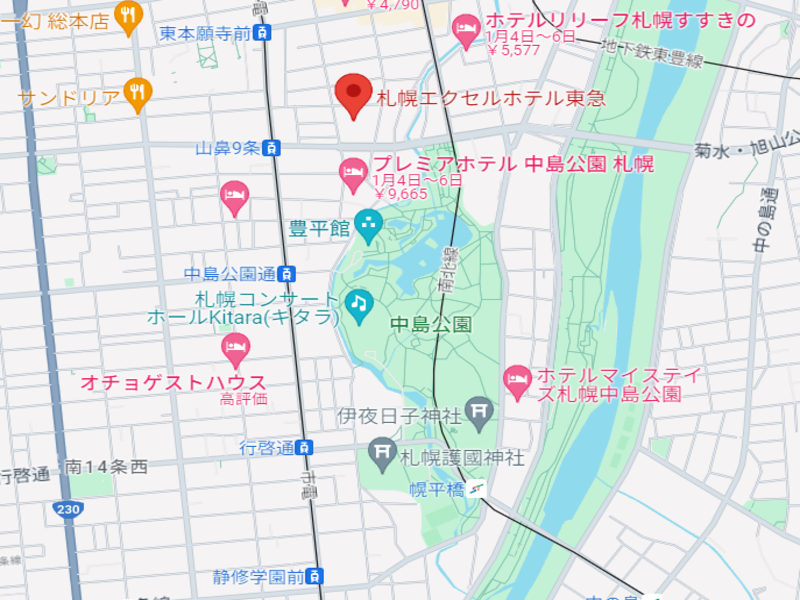 札幌エクセルホテル東急は札幌市の中心部に位置し、周辺には中島公園やススキノなどがあります。また、ホテル前は、移動に便利な数々のバスの発着所です。札幌市 エクセルホテル東急を拠点にお出かけするのにぴったりです。