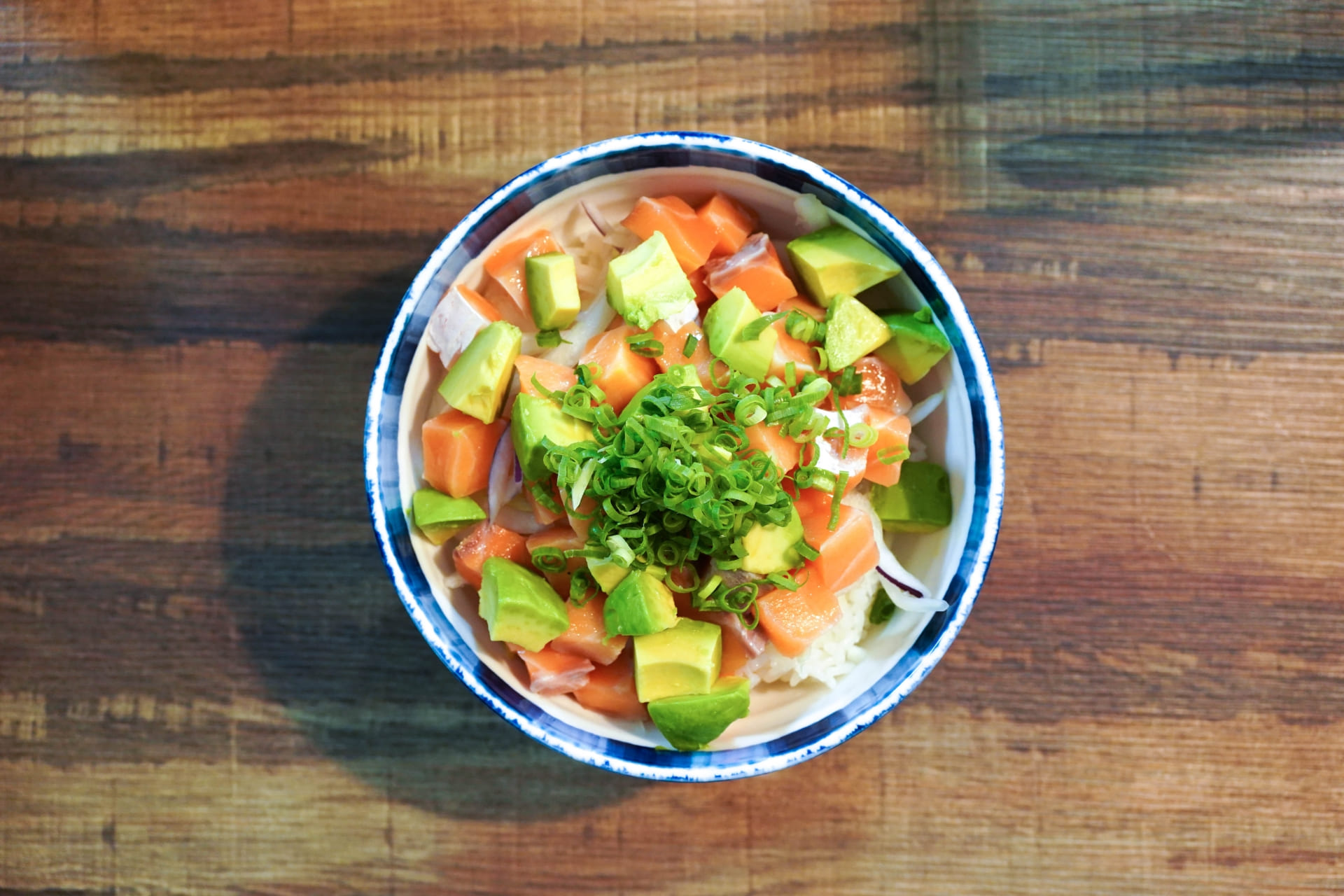 サーモンの刺身とアボカドをご飯に乗せただけのシンプルな丼ですが、アボカドの濃厚さで食欲を満足させることができます。