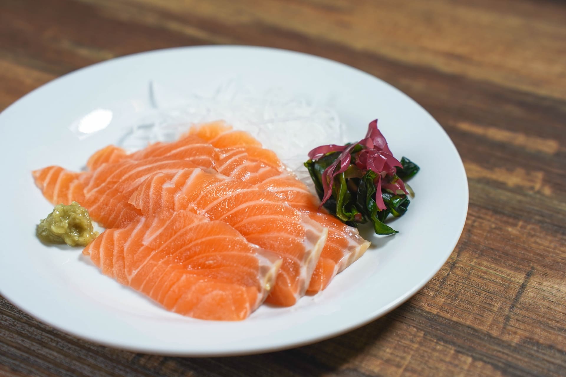 サーモンの刺身と一緒に海藻類や野菜を食べるようにしましょう。