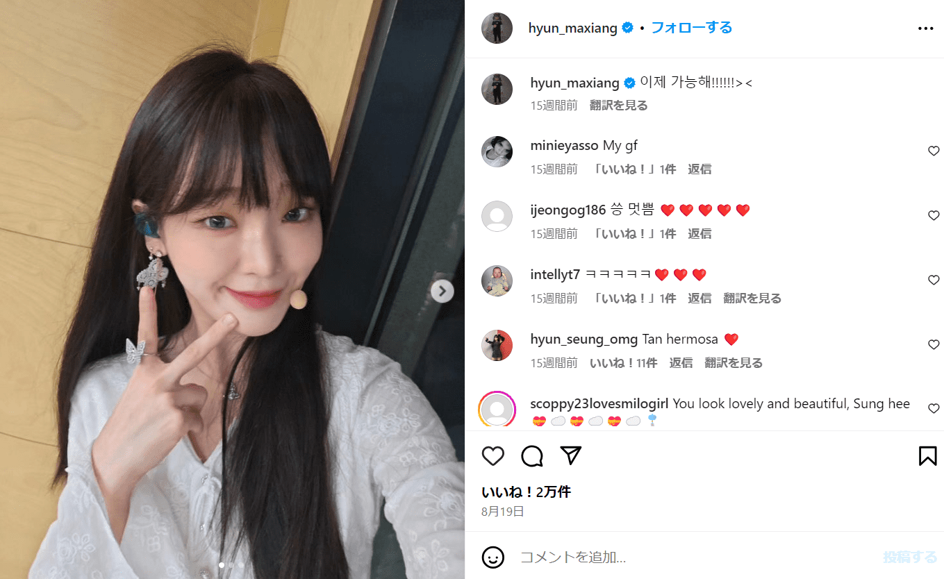スンヒさんは、韓国のアイドルグループ「OH MY GIRL」(オーマイガール)のメンバーで、女優としても活躍しています。