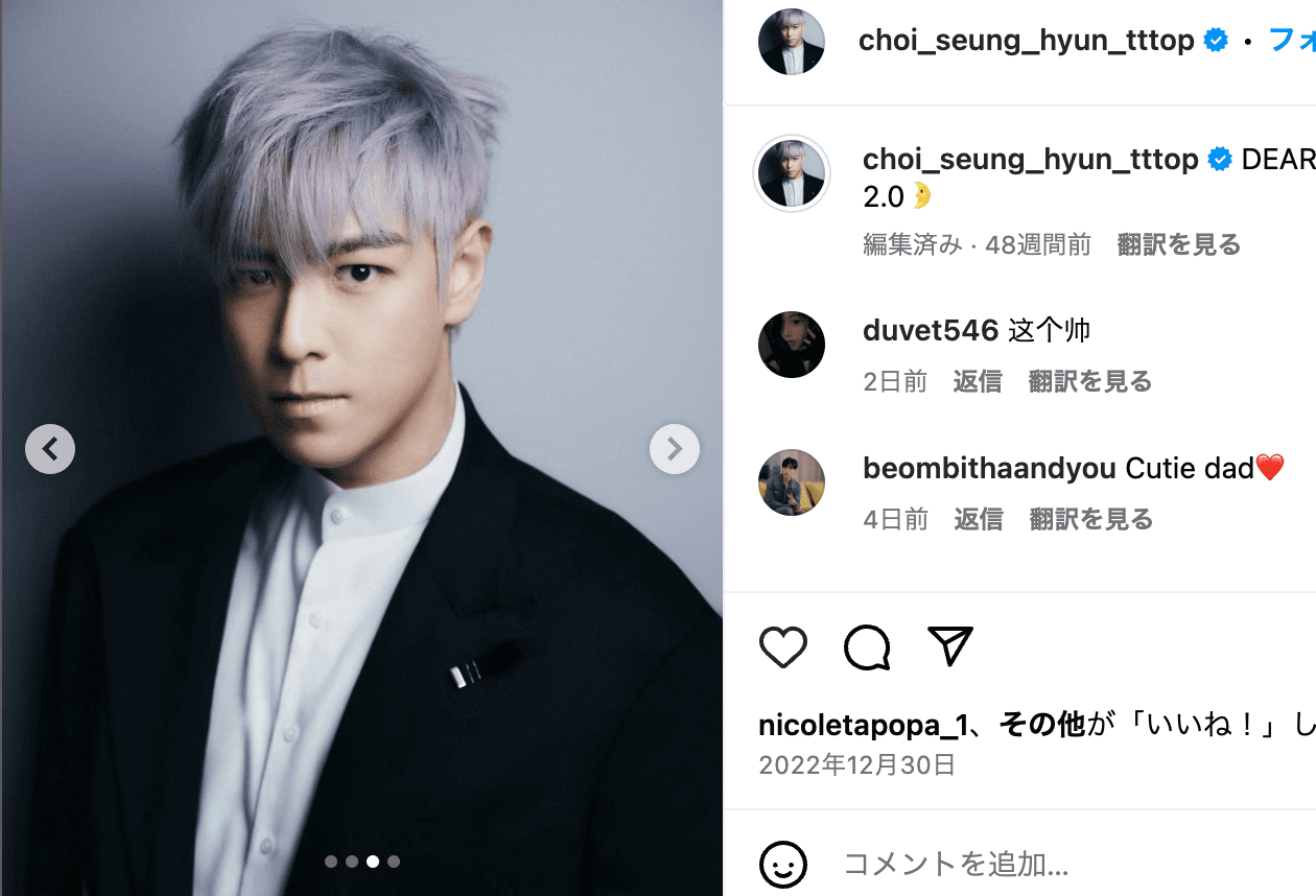 T.O.Pさんは、BIGBANGのメンバーとしての活動だけでなく、俳優としてのキャリアも積んでおり、多面的な才能を持つ人物です。