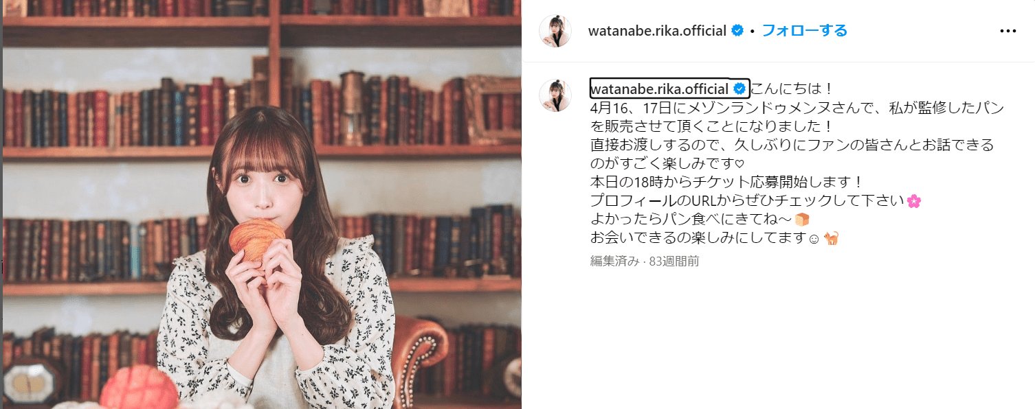 大のパン好きとしても知られる渡辺梨加さん。