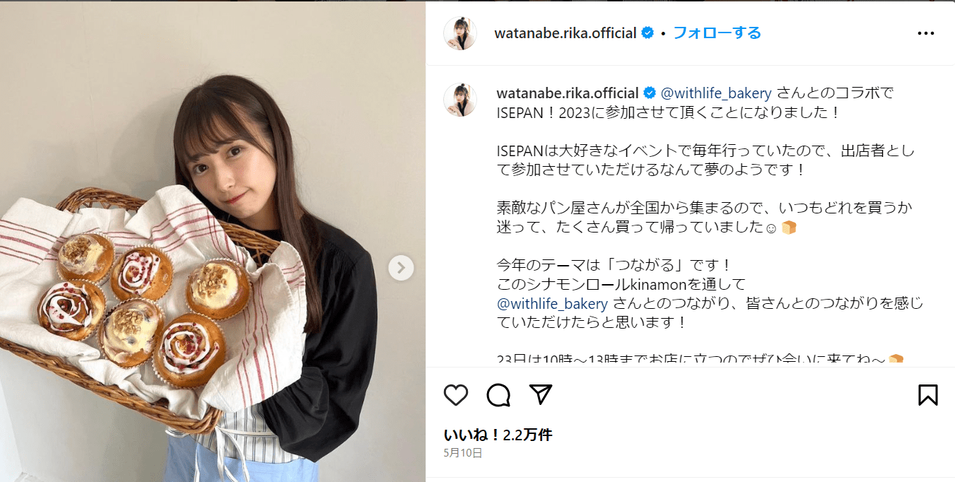 また、パン好きとしても有名でオリジナルの食パンやシナモンロールの監修も手掛けています。