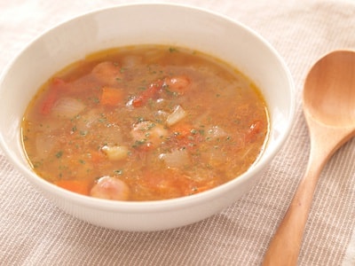 その中でもオススメなのが、トマトを使ったミネストローネ系のスープ。
