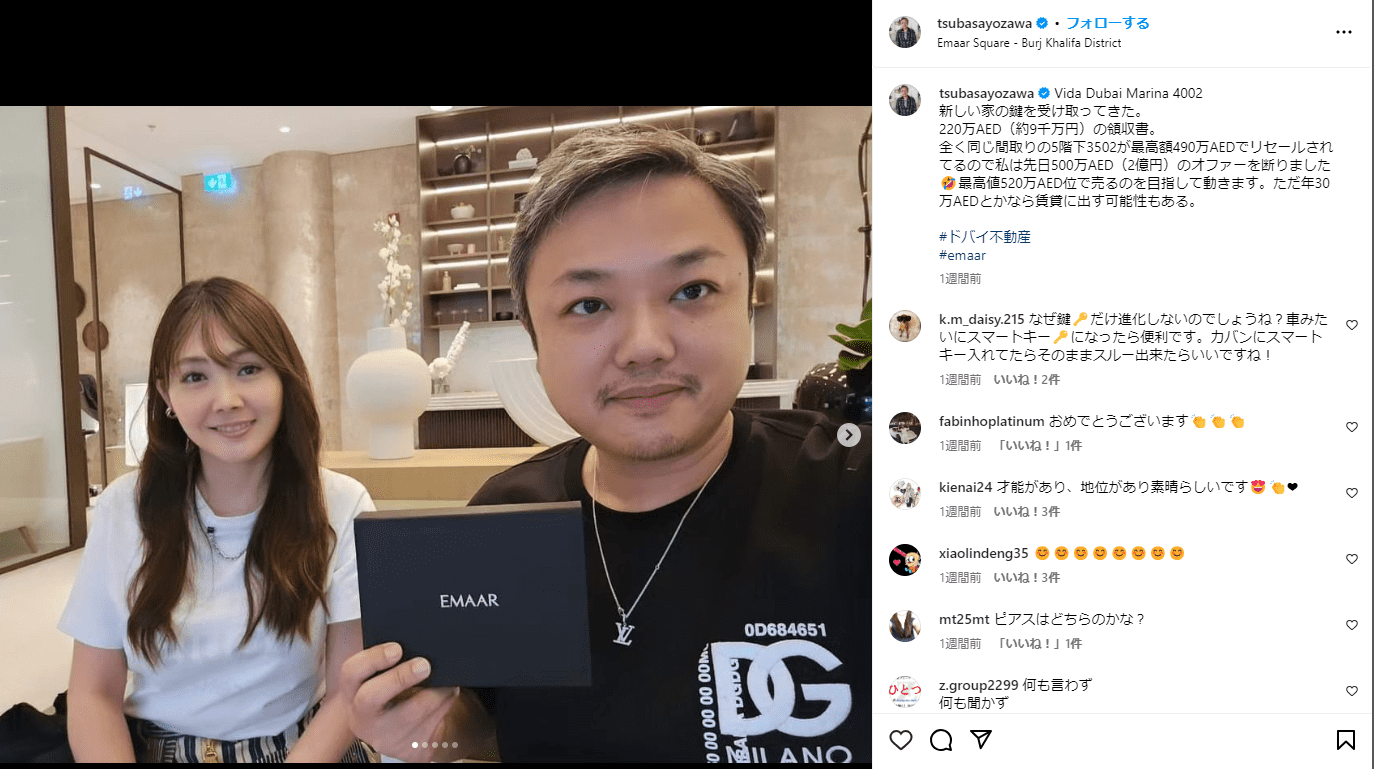 - 2016年にドバイへ移住し、結婚