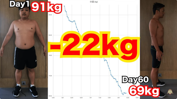 (出典:https://youtu.be/JpVqAimA6Ug [与沢翼式-22kgダイエット] 資産80億円の非常識な2ヶ月の減量)